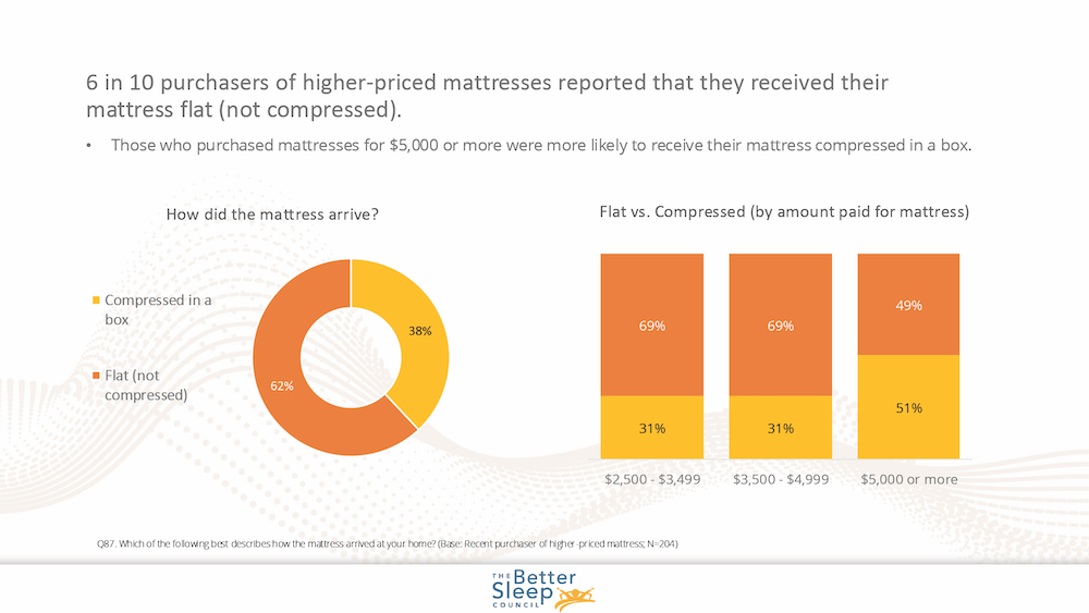 First, the much less shocking statistic: 62% of all higher-priced purchasers obtained their mattresses flat whereas 38% bought their mattress compressed in a field.