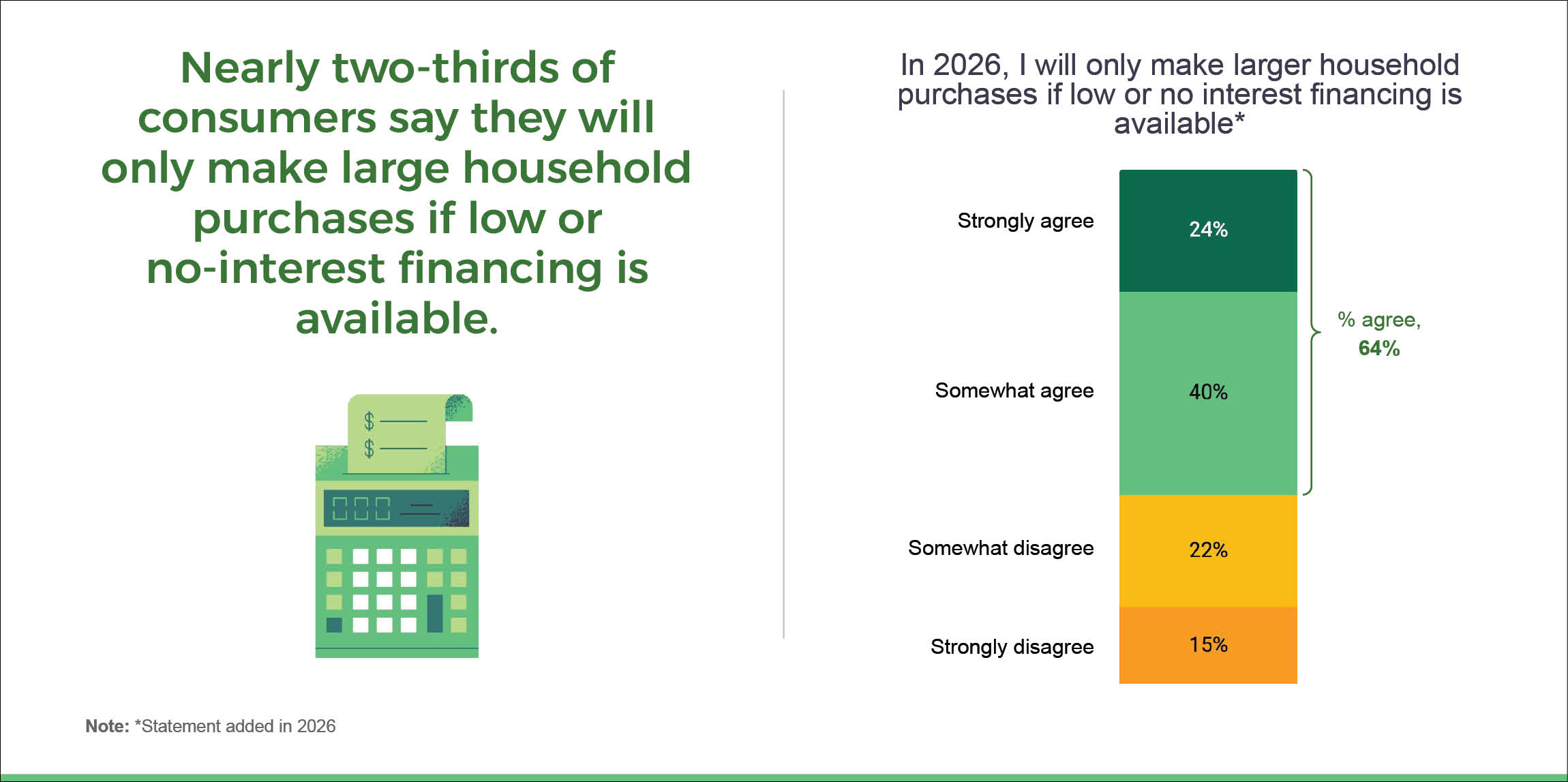 Solely 30% of U.S. adults say they really feel comfy making or contemplating a bigger family buy in 2026. For a lot of customers, financing will play a crucial function in these selections.